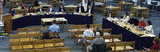 The Hudson Board of Education met in the Gerald M. Reeves Media Center at Hudson High School on Dec. 8, 2025. The meeting marked the last for outgoing members President Steve DiMauro and Vice President Alisa Wright.